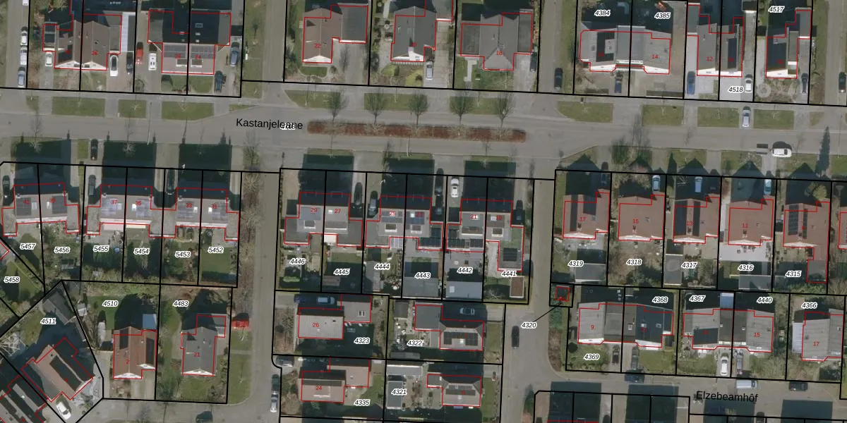 Kastanjeleane 23 is gelegen op kadastraal perceel HUM00B4443. Deze kadastrale aanduiding is uniek en wordt gebruikt door het Kadaster om eigendomsrechten en andere zakelijke rechten vast te leggen. Het perceel maakt onderdeel uit van de kadastrale gemeente Hijum.