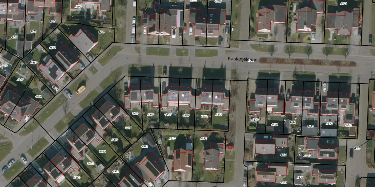 Kastanjeleane 35 is gelegen op kadastraal perceel HUM00B5454. Deze kadastrale aanduiding is uniek en wordt gebruikt door het Kadaster om eigendomsrechten en andere zakelijke rechten vast te leggen. Het perceel maakt onderdeel uit van de kadastrale gemeente Hijum.