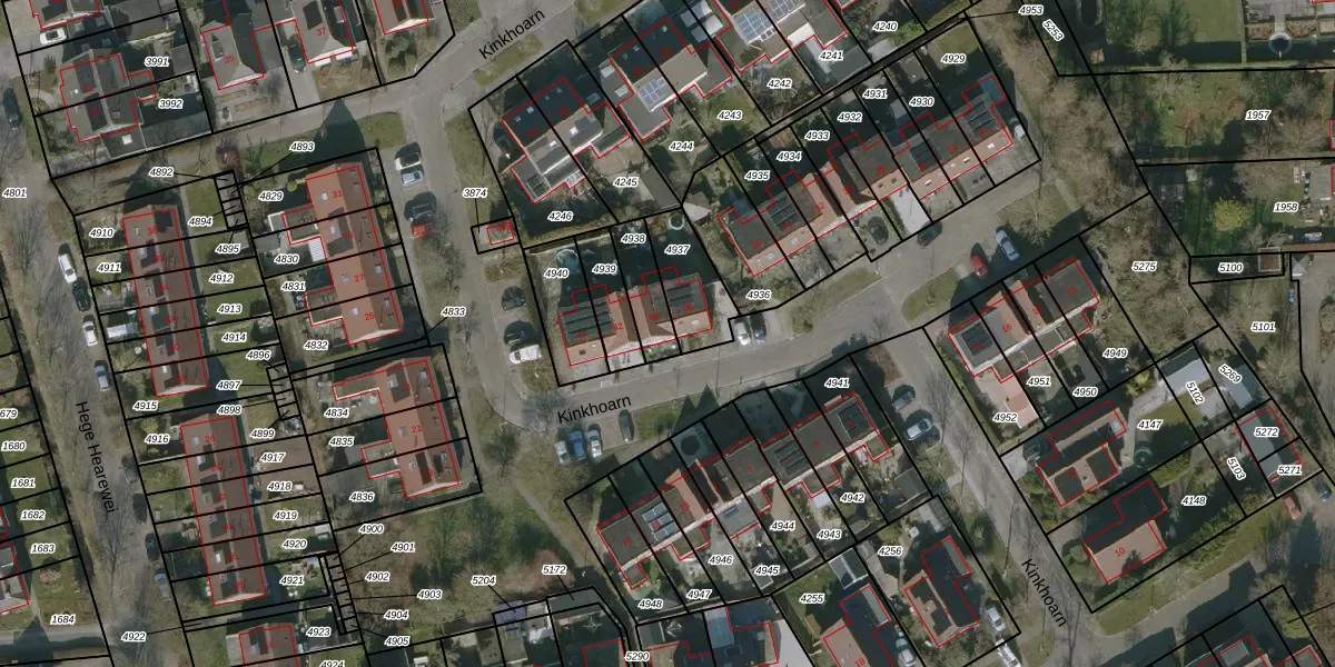 Kinkhoarn 40 is gelegen op kadastraal perceel HUM00B4938. Deze kadastrale aanduiding is uniek en wordt gebruikt door het Kadaster om eigendomsrechten en andere zakelijke rechten vast te leggen. Het perceel maakt onderdeel uit van de kadastrale gemeente Hijum.