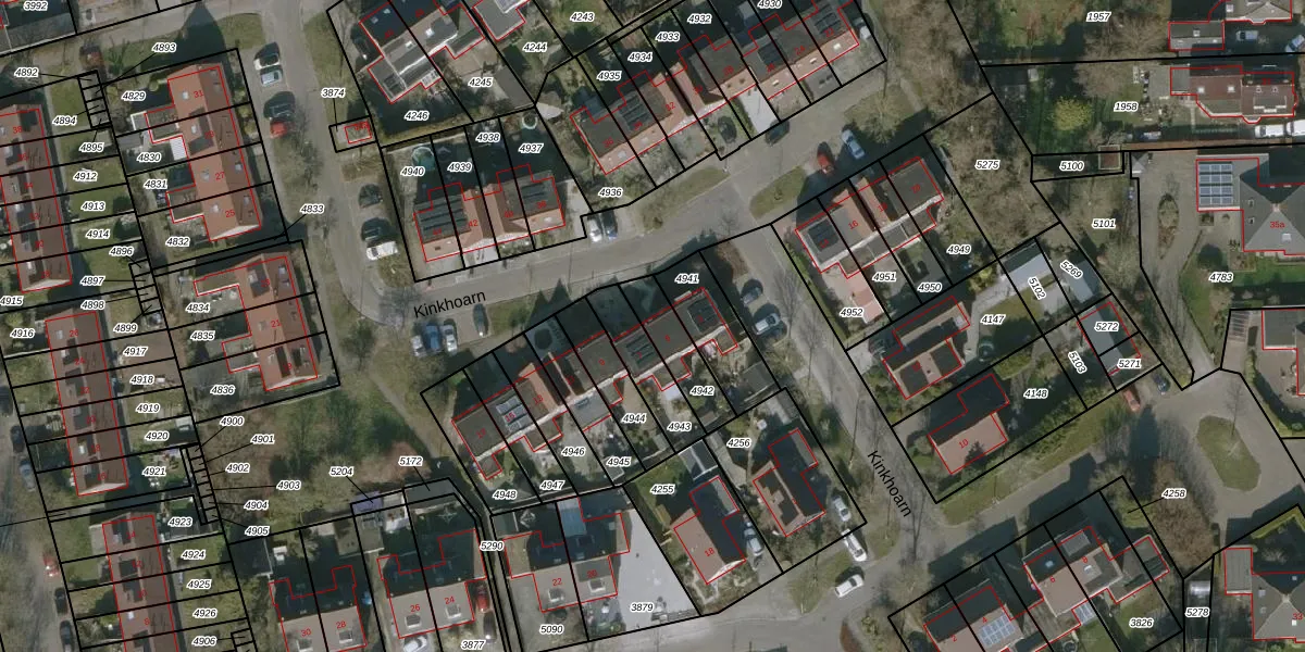 Kinkhoarn 5 is gelegen op kadastraal perceel HUM00B4942. Deze kadastrale aanduiding is uniek en wordt gebruikt door het Kadaster om eigendomsrechten en andere zakelijke rechten vast te leggen. Het perceel maakt onderdeel uit van de kadastrale gemeente Hijum.