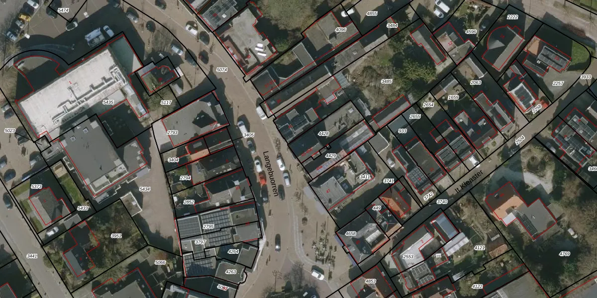 Langebuorren 45 is gelegen op kadastraal perceel HUM00B4428. Deze kadastrale aanduiding is uniek en wordt gebruikt door het Kadaster om eigendomsrechten en andere zakelijke rechten vast te leggen. Het perceel maakt onderdeel uit van de kadastrale gemeente Hijum.