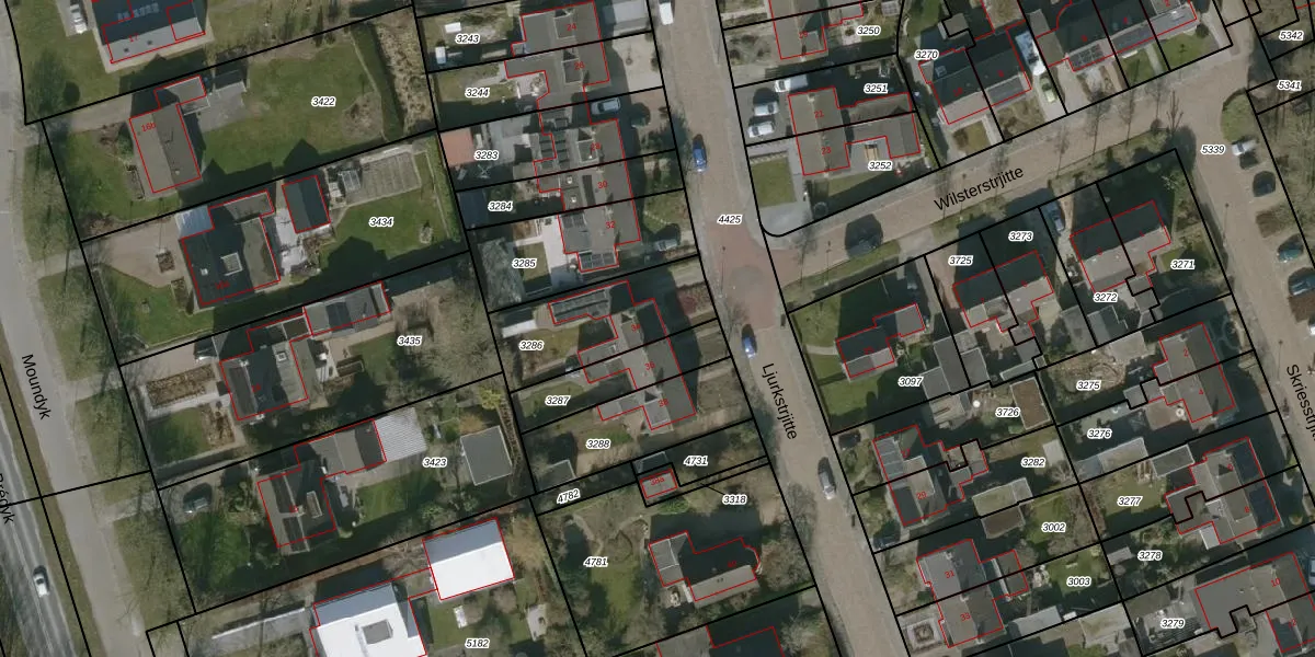 Ljurkstrjitte 34 is gelegen op kadastraal perceel HUM00B3286. Deze kadastrale aanduiding is uniek en wordt gebruikt door het Kadaster om eigendomsrechten en andere zakelijke rechten vast te leggen. Het perceel maakt onderdeel uit van de kadastrale gemeente Hijum.