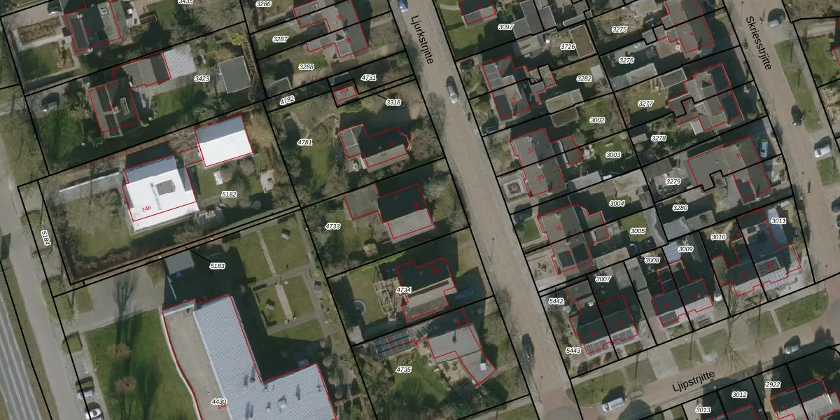 Het perceel waarop Ljurkstrjitte 40-a staat heeft een oppervlakte van 641 m². Dit is een groot perceel. De perceeloppervlakte wordt geregistreerd door het Kadaster. Gedetailleerde informatie over de maten van dit perceel kunt u vinden in het rapport Kadastrale kaart met maatvoering van Ljurkstrjitte 40-a.