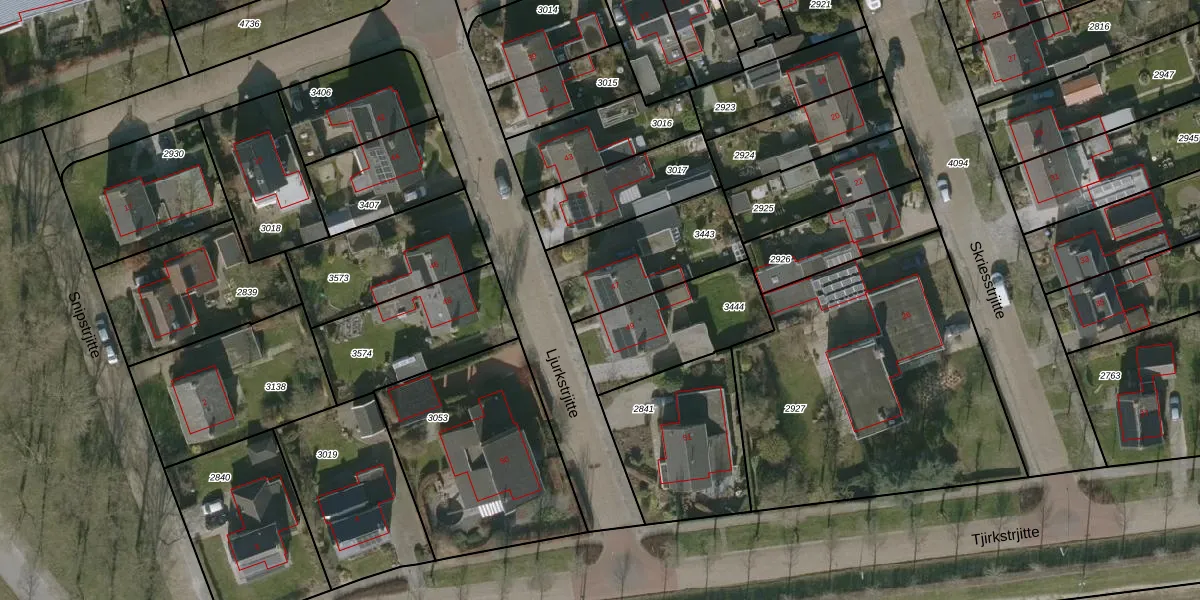 Het perceel waarop Ljurkstrjitte 47 staat heeft een oppervlakte van 403 m². Dit is een groot perceel. De perceeloppervlakte wordt geregistreerd door het Kadaster. Gedetailleerde informatie over de maten van dit perceel kunt u vinden in het rapport Kadastrale kaart met maatvoering van Ljurkstrjitte 47.