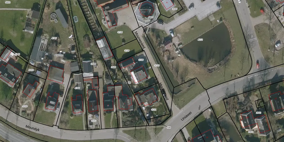 Het perceel waarop Mounepaed 2 staat heeft een oppervlakte van 510 m². Dit is een groot perceel. De perceeloppervlakte wordt geregistreerd door het Kadaster. Gedetailleerde informatie over de maten van dit perceel kunt u vinden in het rapport Kadastrale kaart met maatvoering van Mounepaed 2.