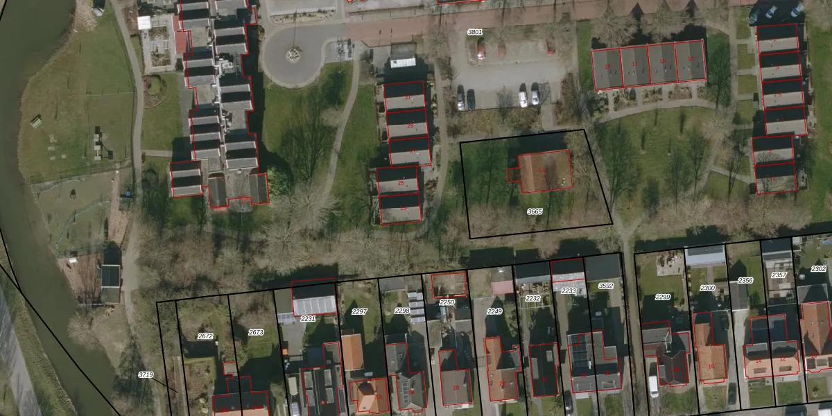 Het perceel waarop Nije Poarte 23 staat heeft een oppervlakte van 2,8 ha. Dit is een zeer groot perceel. De perceeloppervlakte wordt geregistreerd door het Kadaster. Gedetailleerde informatie over de maten van dit perceel kunt u vinden in het rapport Kadastrale kaart met maatvoering van Nije Poarte 23.