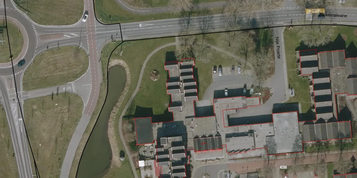 Nije Poarte 33-K105 is gelegen op kadastraal perceel HUM00B3801. Deze kadastrale aanduiding is uniek en wordt gebruikt door het Kadaster om eigendomsrechten en andere zakelijke rechten vast te leggen. Het perceel maakt onderdeel uit van de kadastrale gemeente Hijum.