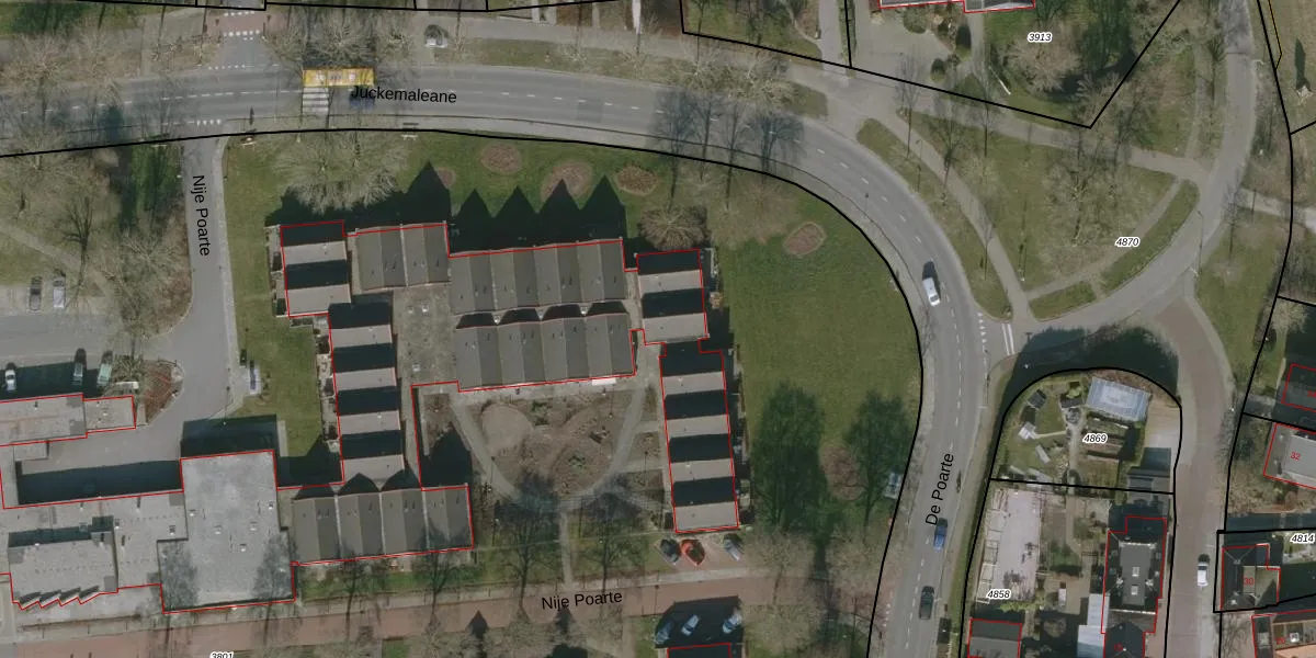 Het perceel waarop Nije Poarte 85 staat heeft een oppervlakte van 2,8 ha. Dit is een zeer groot perceel. De perceeloppervlakte wordt geregistreerd door het Kadaster. Gedetailleerde informatie over de maten van dit perceel kunt u vinden in het rapport Kadastrale kaart met maatvoering van Nije Poarte 85.