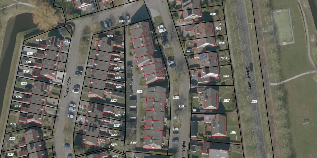 Het perceel waarop Ophirstrjitte 12-a staat heeft een oppervlakte van 2092 m². Dit is een zeer groot perceel. De perceeloppervlakte wordt geregistreerd door het Kadaster. Gedetailleerde informatie over de maten van dit perceel kunt u vinden in het rapport Kadastrale kaart met maatvoering van Ophirstrjitte 12-a.
