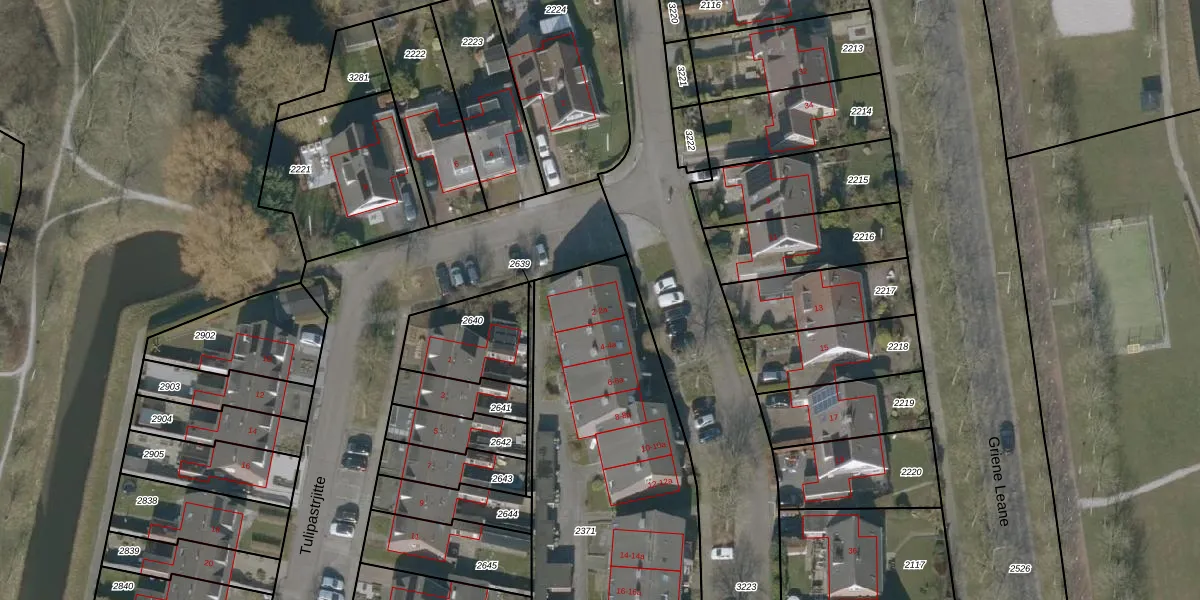 Het perceel waarop Ophirstrjitte 2-a staat heeft een oppervlakte van 2092 m². Dit is een zeer groot perceel. De perceeloppervlakte wordt geregistreerd door het Kadaster. Gedetailleerde informatie over de maten van dit perceel kunt u vinden in het rapport Kadastrale kaart met maatvoering van Ophirstrjitte 2-a.