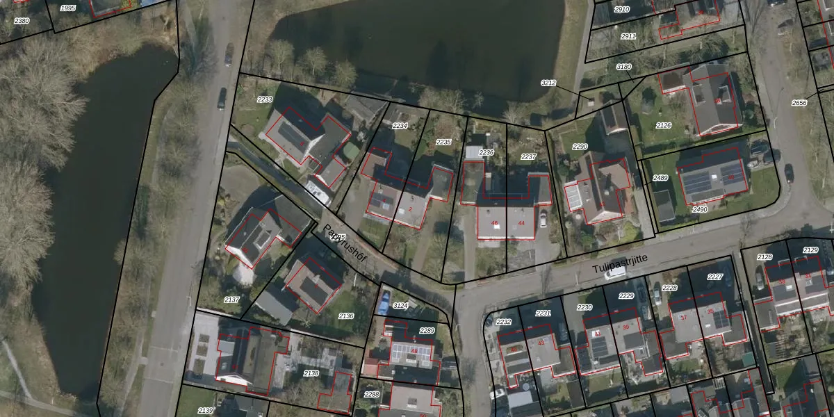 Het perceel waarop Papyrushôf 2 staat heeft een oppervlakte van 474 m². Dit is een groot perceel. De perceeloppervlakte wordt geregistreerd door het Kadaster. Gedetailleerde informatie over de maten van dit perceel kunt u vinden in het rapport Kadastrale kaart met maatvoering van Papyrushôf 2.