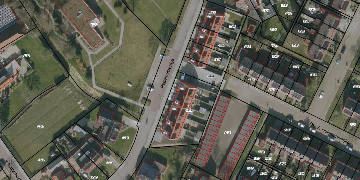 Petterhústerdyk 23 is gelegen op kadastraal perceel HUM00B4879. Deze kadastrale aanduiding is uniek en wordt gebruikt door het Kadaster om eigendomsrechten en andere zakelijke rechten vast te leggen. Het perceel maakt onderdeel uit van de kadastrale gemeente Hijum.