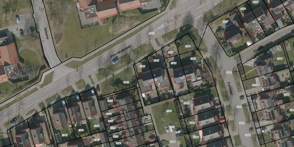 Het perceel waarop Pim Mulierwei 16 staat heeft een oppervlakte van 321 m². Dit is een groot perceel. De perceeloppervlakte wordt geregistreerd door het Kadaster. Gedetailleerde informatie over de maten van dit perceel kunt u vinden in het rapport Kadastrale kaart met maatvoering van Pim Mulierwei 16.