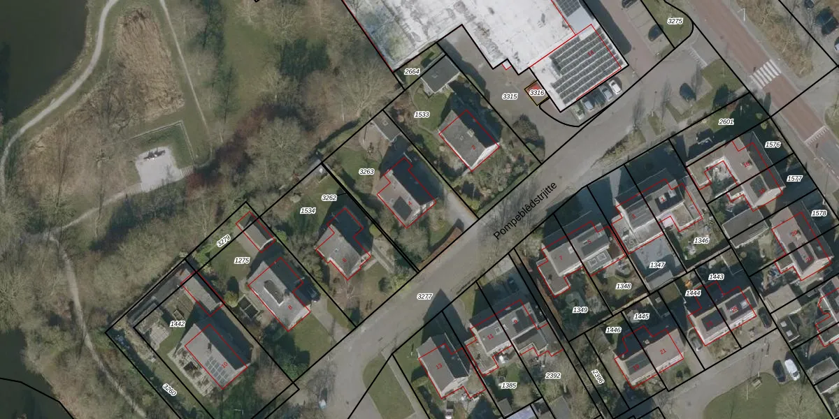 Gebruik de zoekbalk of klik op een perceel voor informatie over de adressen binnen dit perceel.