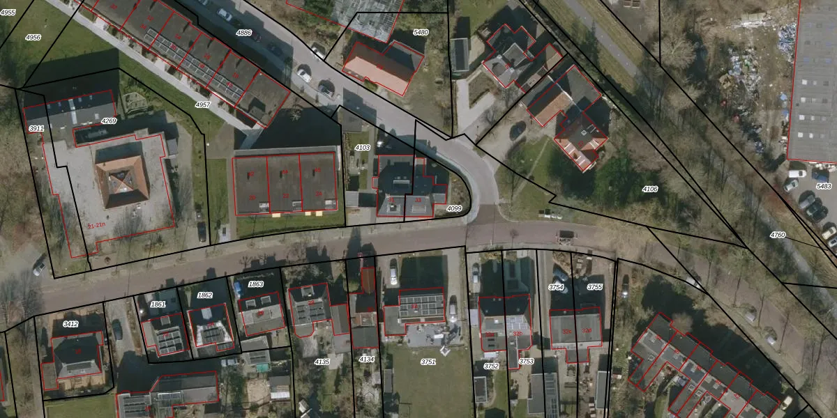 Pyter Jurjensstrjitte 33 is gelegen op kadastraal perceel HUM00B4099. Deze kadastrale aanduiding is uniek en wordt gebruikt door het Kadaster om eigendomsrechten en andere zakelijke rechten vast te leggen. Het perceel maakt onderdeel uit van de kadastrale gemeente Hijum.