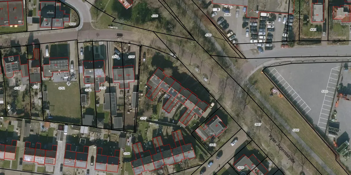 Pyter Jurjensstrjitte 38 is gelegen op kadastraal perceel HUM00B3758. Deze kadastrale aanduiding is uniek en wordt gebruikt door het Kadaster om eigendomsrechten en andere zakelijke rechten vast te leggen. Het perceel maakt onderdeel uit van de kadastrale gemeente Hijum.