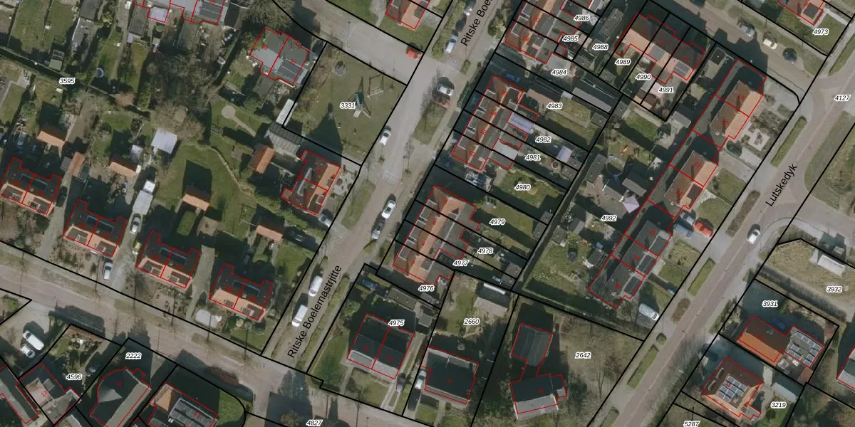 Gebruik de zoekbalk of klik op een perceel voor informatie over de adressen binnen dit perceel.