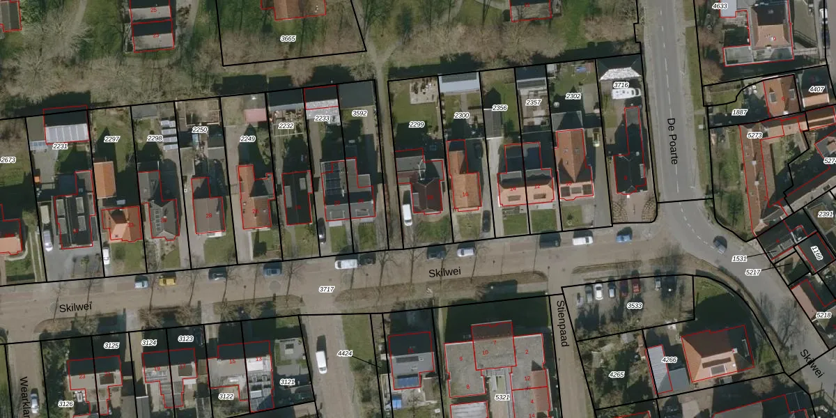 Het perceel waarop Skilwei 18 staat heeft een oppervlakte van 482 m². Dit is een groot perceel. De perceeloppervlakte wordt geregistreerd door het Kadaster. Gedetailleerde informatie over de maten van dit perceel kunt u vinden in het rapport Kadastrale kaart met maatvoering van Skilwei 18.