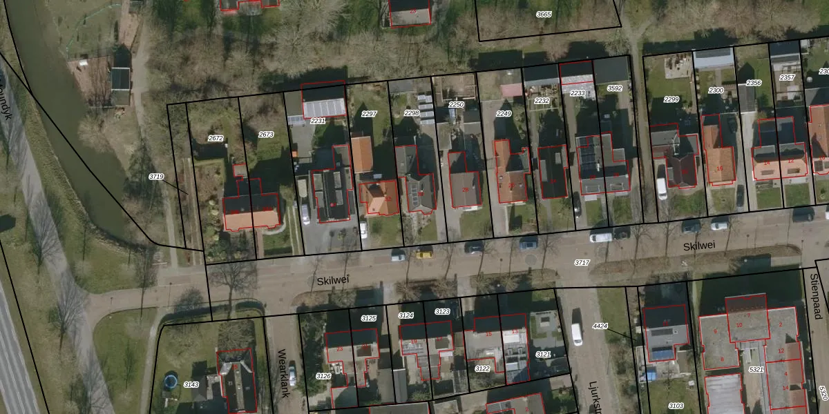 Het perceel waarop Skilwei 30 staat heeft een oppervlakte van 423 m². Dit is een groot perceel. De perceeloppervlakte wordt geregistreerd door het Kadaster. Gedetailleerde informatie over de maten van dit perceel kunt u vinden in het rapport Kadastrale kaart met maatvoering van Skilwei 30.