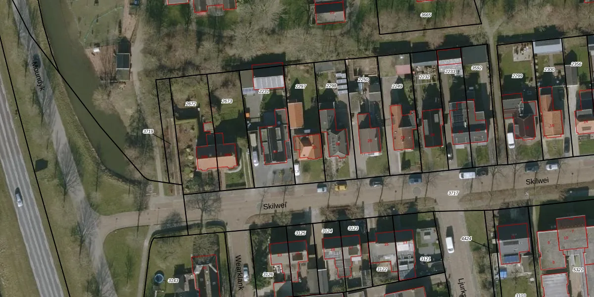 Het perceel waarop Skilwei 32 staat heeft een oppervlakte van 420 m². Dit is een groot perceel. De perceeloppervlakte wordt geregistreerd door het Kadaster. Gedetailleerde informatie over de maten van dit perceel kunt u vinden in het rapport Kadastrale kaart met maatvoering van Skilwei 32.
