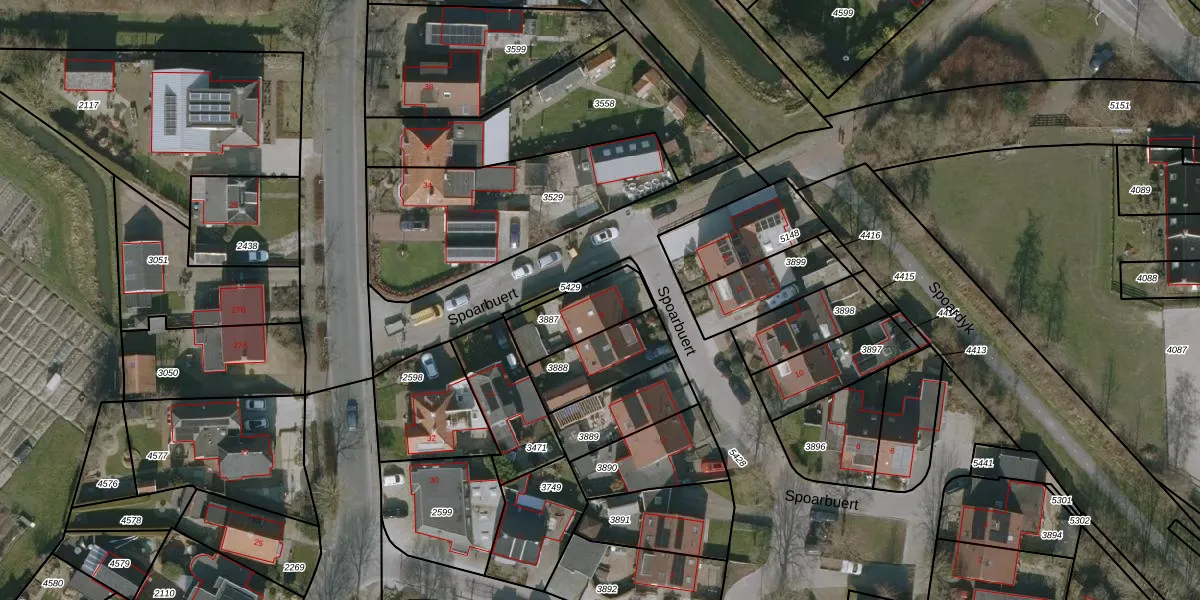 Het perceel waarop Spoarbuert 9 staat heeft een oppervlakte van 196 m². Dit is een middelgroot perceel. De perceeloppervlakte wordt geregistreerd door het Kadaster. Gedetailleerde informatie over de maten van dit perceel kunt u vinden in het rapport Kadastrale kaart met maatvoering van Spoarbuert 9.