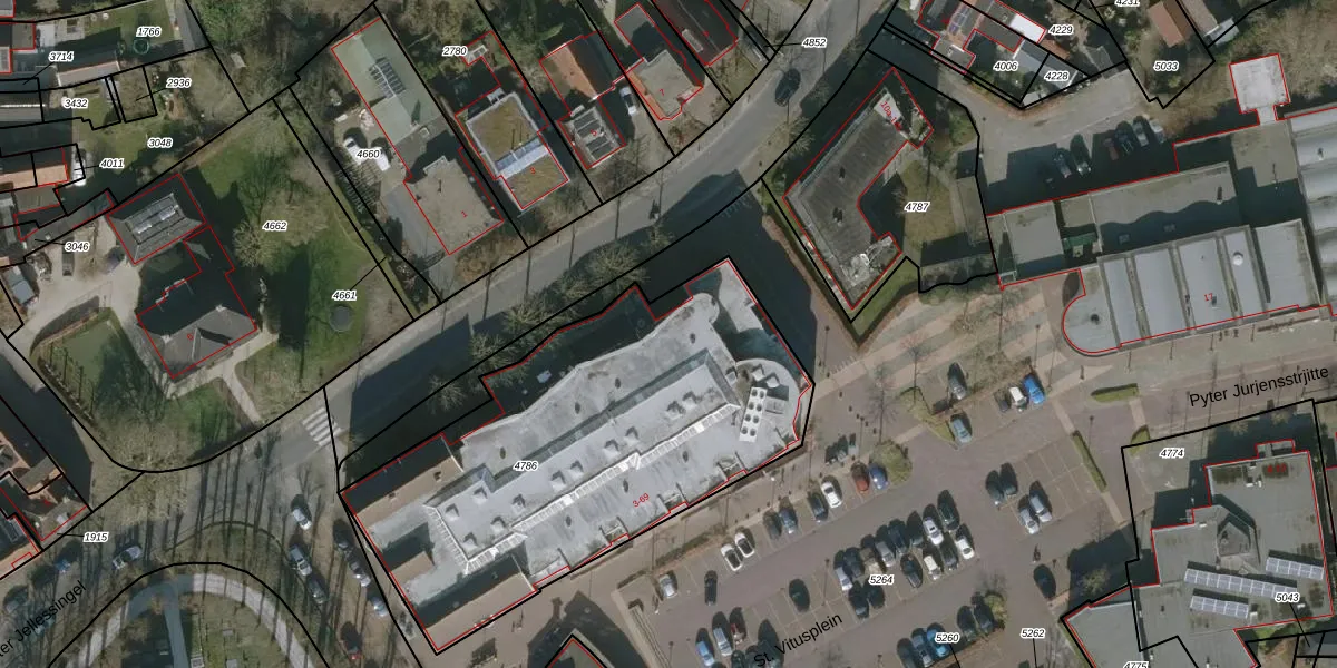 St. Vitusplein 13 is gelegen op kadastraal perceel HUM00B4786. Deze kadastrale aanduiding is uniek en wordt gebruikt door het Kadaster om eigendomsrechten en andere zakelijke rechten vast te leggen. Het perceel maakt onderdeel uit van de kadastrale gemeente Hijum.