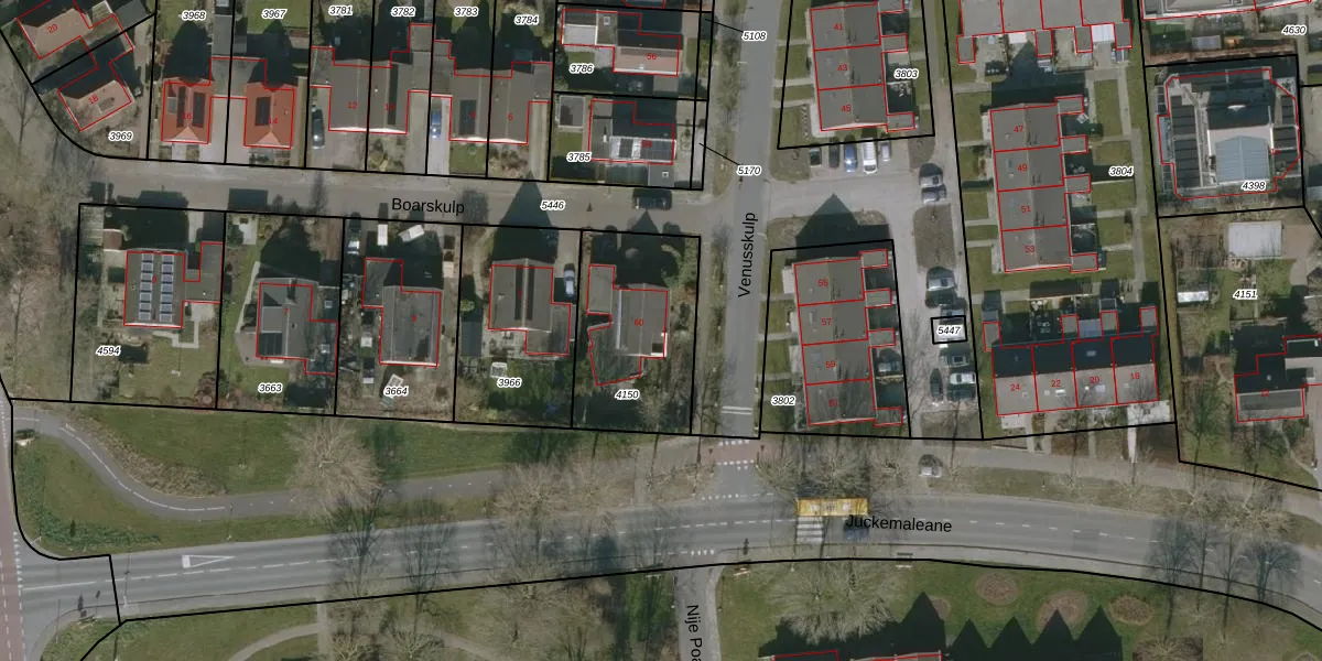 Venusskulp 60 is gelegen op kadastraal perceel HUM00B4150. Deze kadastrale aanduiding is uniek en wordt gebruikt door het Kadaster om eigendomsrechten en andere zakelijke rechten vast te leggen. Het perceel maakt onderdeel uit van de kadastrale gemeente Hijum.