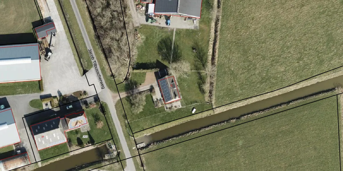 Het perceel waarop Jacob Tilbusscherweg 28 staat heeft een oppervlakte van 19,1 ha. Dit is een zeer groot perceel. De perceeloppervlakte wordt geregistreerd door het Kadaster. Gedetailleerde informatie over de maten van dit perceel kunt u vinden in het rapport Kadastrale kaart met maatvoering van Jacob Tilbusscherweg 28.