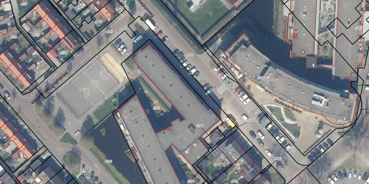 Het adres is gelegen op perceel 5251 in de sectie D en de kadastrale gemeente Stolwijk. De kadastrale aanduiding is aldus SWK02-D-5251. Het perceel is 3022 m² groot. Dat is kleiner dan de gemiddelde perceeloppervlakte in Stolwijk, dat op 4602,99 m² ligt. De grootste perceeloppervlakte in de kadastrale gemeente is 34,2 ha. De kleinste oppervlakte bedraagt 0 m². Er zijn 44 adressen aanwezig op het perceel. De laatste wijziging in het de Basisregistratie Kadaster (BRK) was op 02-02-2006.