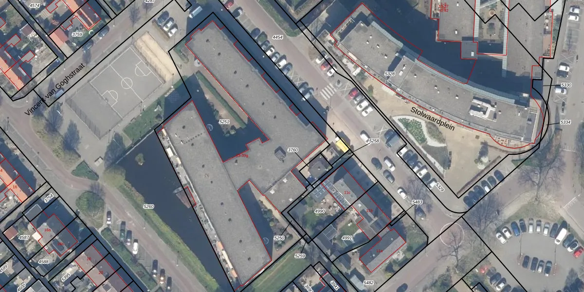 Het adres is gelegen op perceel 5251 in de sectie D en de kadastrale gemeente Stolwijk. De kadastrale aanduiding is aldus SWK02-D-5251. De gemiddelde perceelgrootte in Stolwijk is 4602,99 m². Dit perceel is kleiner: de perceeloppervlakte bedraagt 3022 m². Het kleinste perceel in de kadastrale gemeente is 0 m² groot. De grootste perceeloppervlakte is 34,2 ha. Op het perceel liggen in totaal 44 adressen. De huidige grenzen van het perceel zijn digitaal in de Basisregistratie Kadaster (BRK) geregistreerd op 02-02-2006.