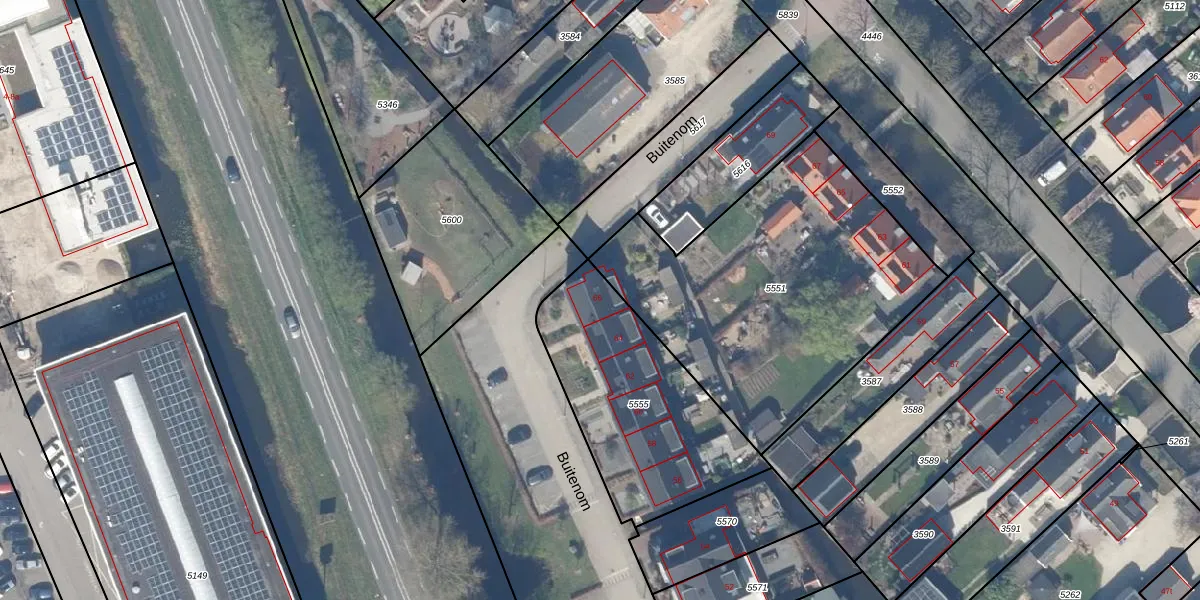 Het perceel waarop Buitenom 66 staat heeft een oppervlakte van 832 m². Dit is een groot perceel. De perceeloppervlakte wordt geregistreerd door het Kadaster. Gedetailleerde informatie over de maten van dit perceel kunt u vinden in het rapport Kadastrale kaart met maatvoering van Buitenom 66.