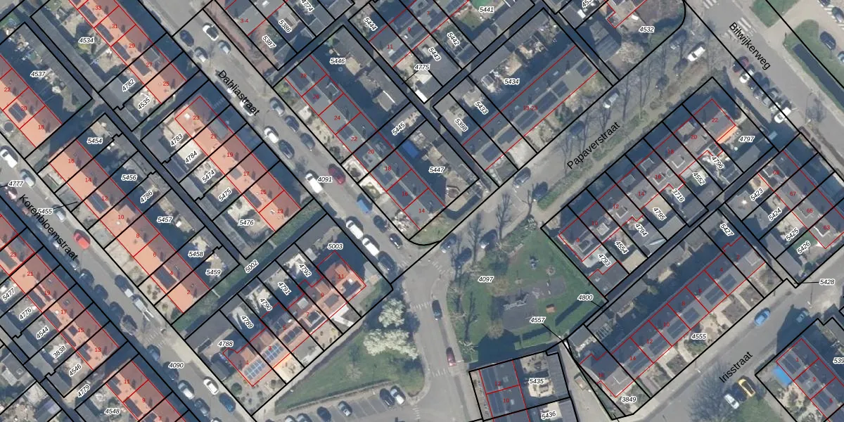 Dahliastraat 14 is gelegen op kadastraal perceel SWK02D5447. Deze kadastrale aanduiding is uniek en wordt gebruikt door het Kadaster om eigendomsrechten en andere zakelijke rechten vast te leggen. Het perceel maakt onderdeel uit van de kadastrale gemeente Stolwijk.