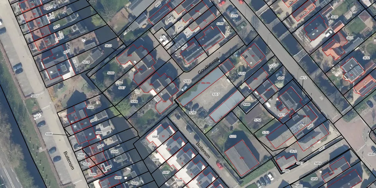 Goudseweg 39-n is gelegen op kadastraal perceel SWK02D5317. Deze kadastrale aanduiding is uniek en wordt gebruikt door het Kadaster om eigendomsrechten en andere zakelijke rechten vast te leggen. Het perceel maakt onderdeel uit van de kadastrale gemeente Stolwijk.