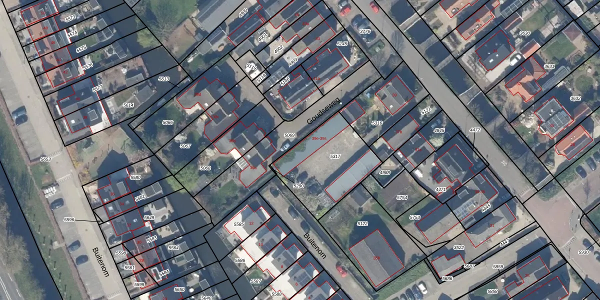 Het perceel waarop Goudseweg 39-g staat heeft een oppervlakte van 681 m². Dit is een groot perceel. De perceeloppervlakte wordt geregistreerd door het Kadaster. Gedetailleerde informatie over de maten van dit perceel kunt u vinden in het rapport Kadastrale kaart met maatvoering van Goudseweg 39-g.