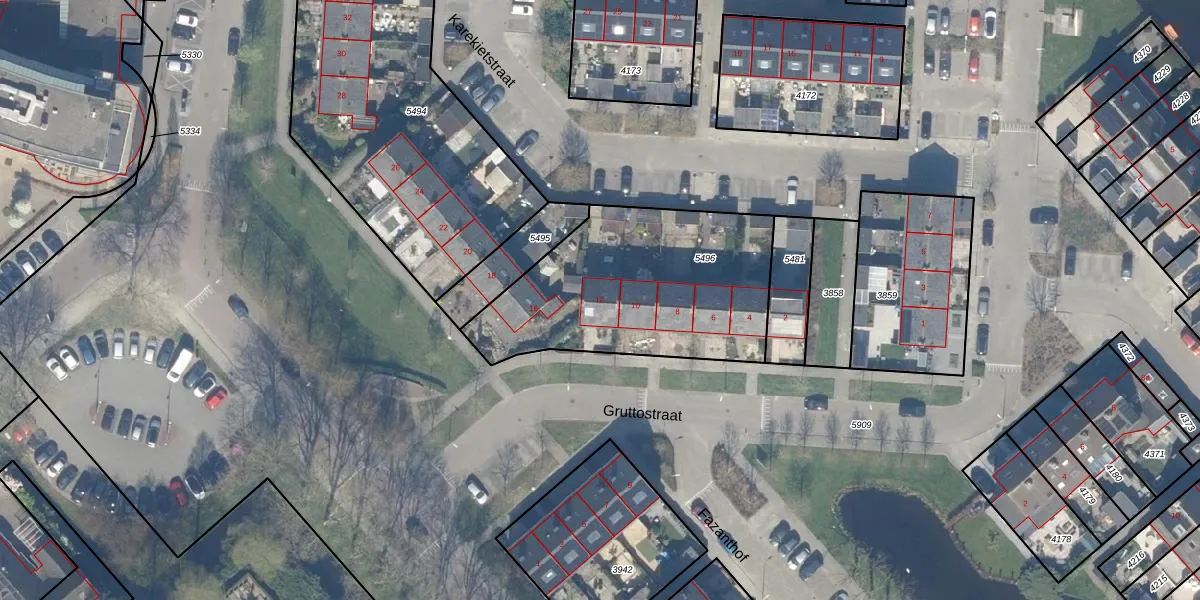 Het perceel waarop Gruttostraat 12 staat heeft een oppervlakte van 1017 m². Dit is een zeer groot perceel. De perceeloppervlakte wordt geregistreerd door het Kadaster. Gedetailleerde informatie over de maten van dit perceel kunt u vinden in het rapport Kadastrale kaart met maatvoering van Gruttostraat 12.