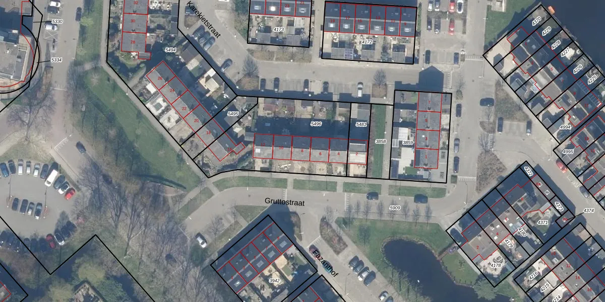 Het perceel waarop Gruttostraat 8 staat heeft een oppervlakte van 1017 m². Dit is een zeer groot perceel. De perceeloppervlakte wordt geregistreerd door het Kadaster. Gedetailleerde informatie over de maten van dit perceel kunt u vinden in het rapport Kadastrale kaart met maatvoering van Gruttostraat 8.
