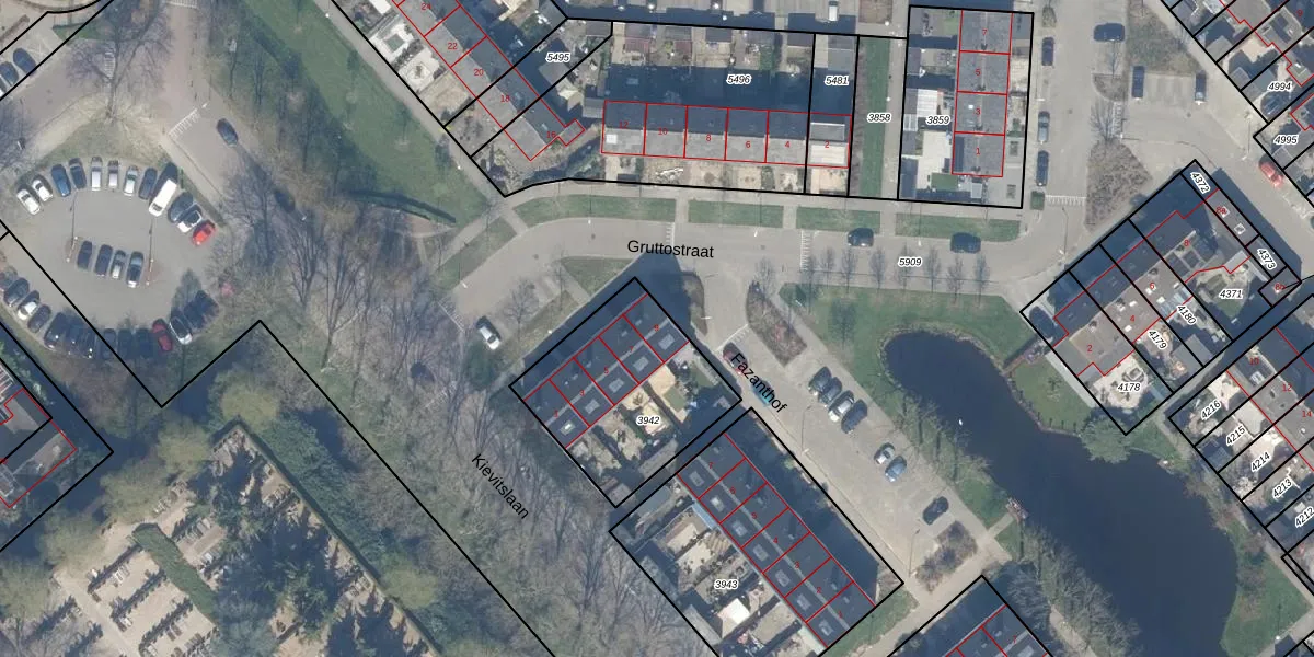 Het perceel waarop Gruttostraat 9 staat heeft een oppervlakte van 621 m². Dit is een groot perceel. De perceeloppervlakte wordt geregistreerd door het Kadaster. Gedetailleerde informatie over de maten van dit perceel kunt u vinden in het rapport Kadastrale kaart met maatvoering van Gruttostraat 9.