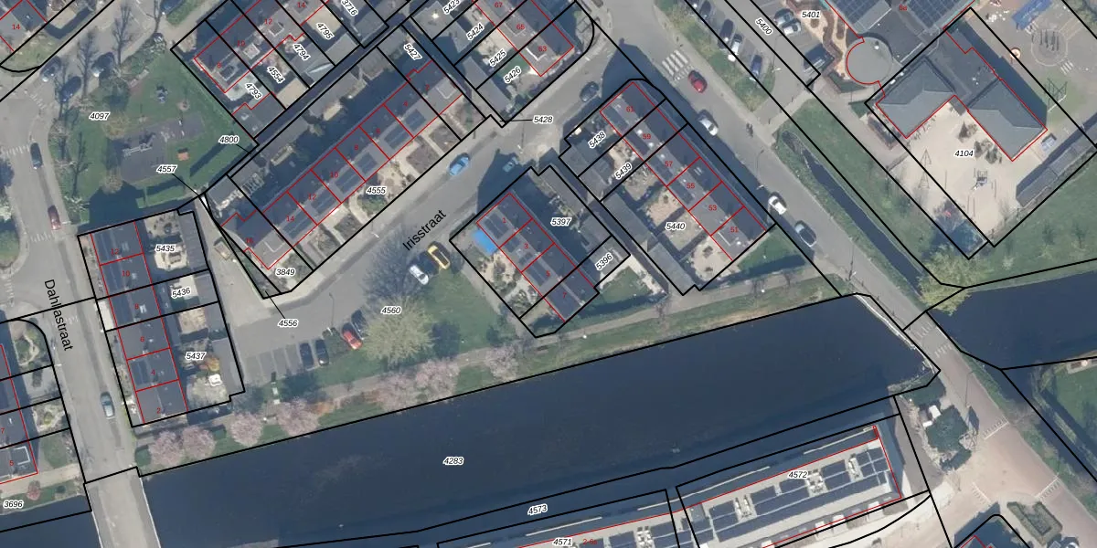 Irisstraat 5 is gelegen op kadastraal perceel SWK02D5397. Deze kadastrale aanduiding is uniek en wordt gebruikt door het Kadaster om eigendomsrechten en andere zakelijke rechten vast te leggen. Het perceel maakt onderdeel uit van de kadastrale gemeente Stolwijk.