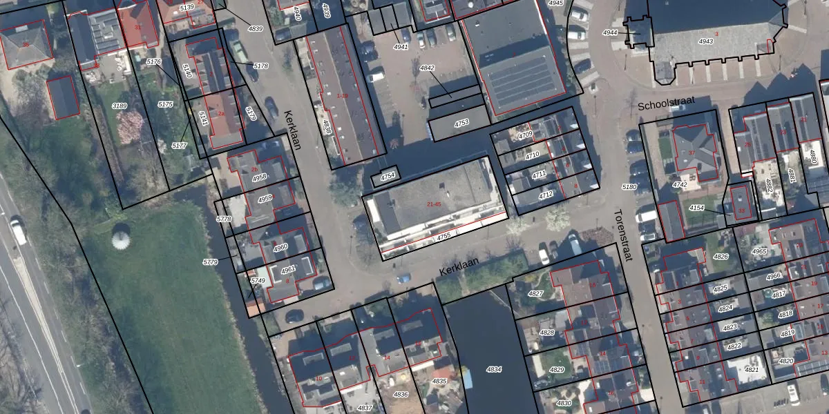Kerklaan 39 is gelegen op kadastraal perceel SWK02D4755. Deze kadastrale aanduiding is uniek en wordt gebruikt door het Kadaster om eigendomsrechten en andere zakelijke rechten vast te leggen. Het perceel maakt onderdeel uit van de kadastrale gemeente Stolwijk.