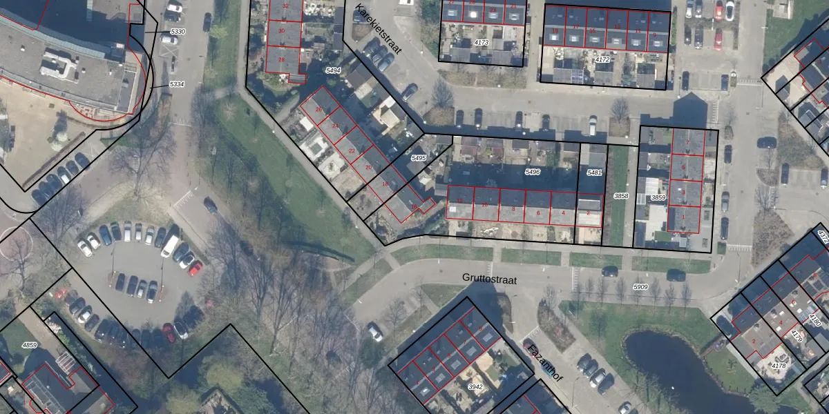 Het adres is gelegen op perceel 5496 in de sectie D en de kadastrale gemeente Stolwijk. De kadastrale aanduiding is aldus SWK02-D-5496. Het perceel is kleiner dan gemiddeld in Stolwijk. Het perceel is 1017 m² groot, terwijl het gemiddelde ligt op 4602,99 m². Het kleinste perceel in de kadastrale gemeente is 0 m² groot. De grootste perceeloppervlakte is 34,2 ha. Op het perceel zijn 6 adressen aanwezig. In de Basisregistratie Kadaster (BRK) werden de grenzen van het perceel geregistreerd op 23-05-2013.