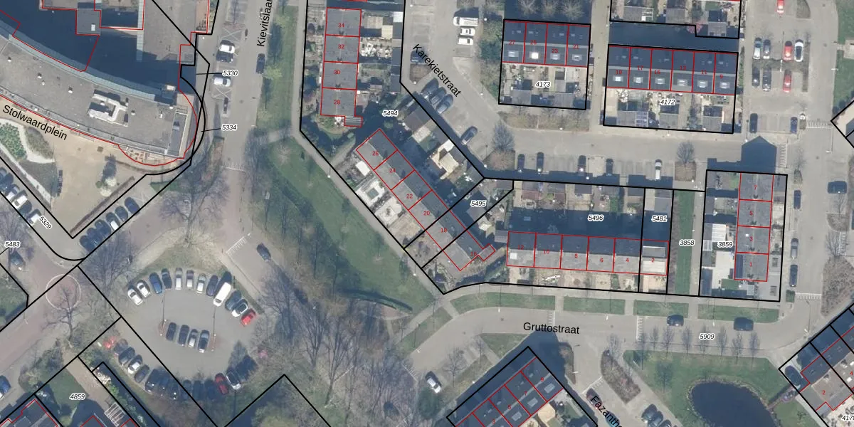 Kievitslaan 20 is gelegen op kadastraal perceel SWK02D5494. Deze kadastrale aanduiding is uniek en wordt gebruikt door het Kadaster om eigendomsrechten en andere zakelijke rechten vast te leggen. Het perceel maakt onderdeel uit van de kadastrale gemeente Stolwijk.