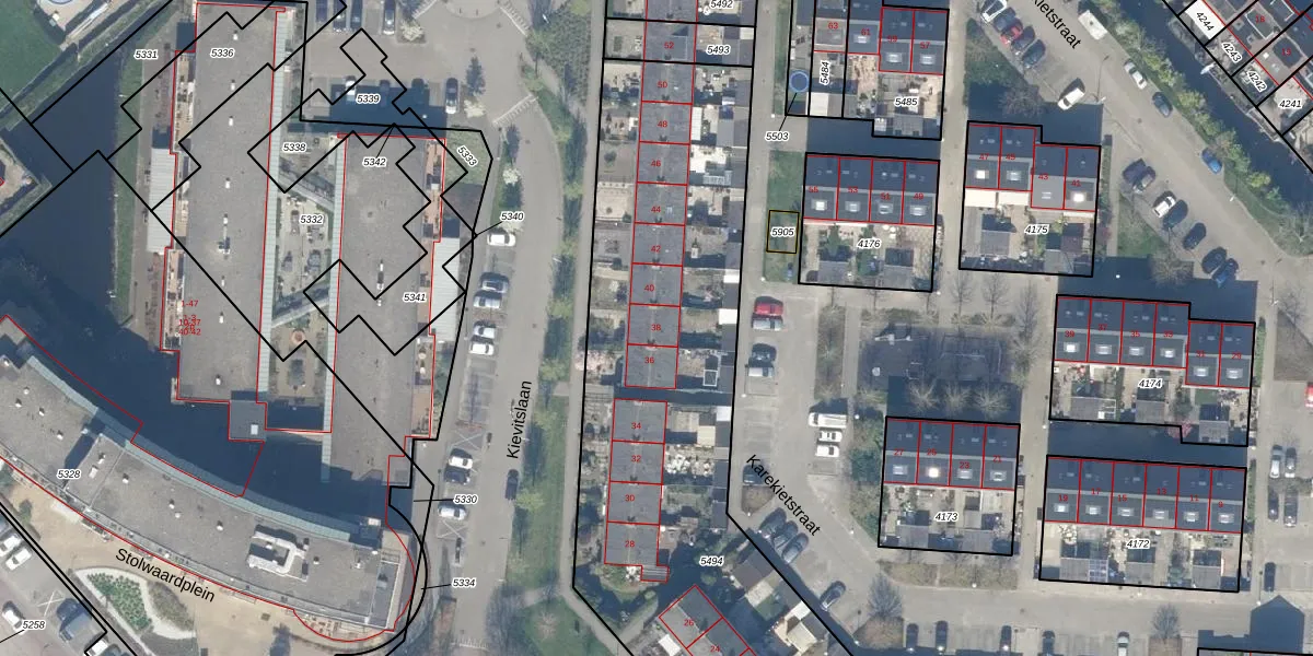 Kievitslaan 38 is gelegen op kadastraal perceel SWK02D5494. Deze kadastrale aanduiding is uniek en wordt gebruikt door het Kadaster om eigendomsrechten en andere zakelijke rechten vast te leggen. Het perceel maakt onderdeel uit van de kadastrale gemeente Stolwijk.