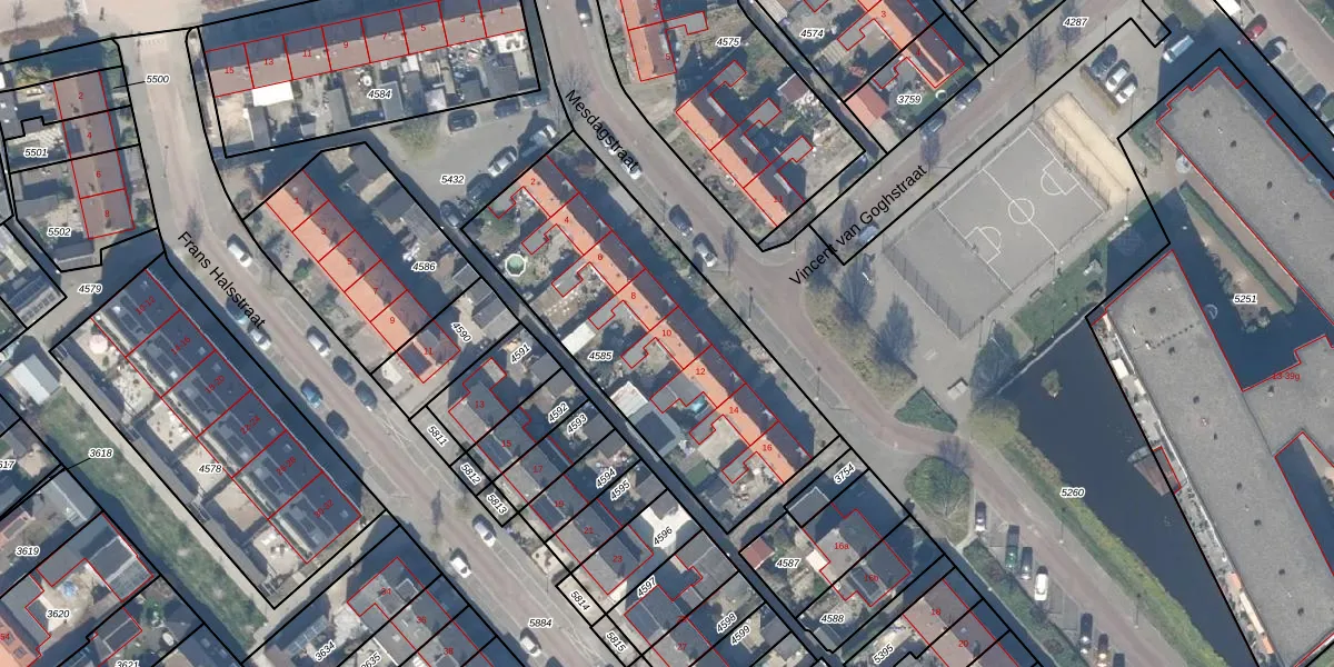 Mesdagstraat 10 is gelegen op kadastraal perceel SWK02D4585. Deze kadastrale aanduiding is uniek en wordt gebruikt door het Kadaster om eigendomsrechten en andere zakelijke rechten vast te leggen. Het perceel maakt onderdeel uit van de kadastrale gemeente Stolwijk.