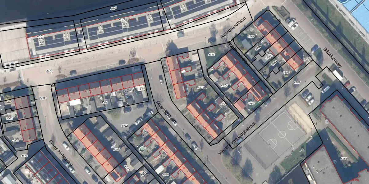 Het perceel waarop Mesdagstraat 5 staat heeft een oppervlakte van 1050 m². Dit is een zeer groot perceel. De perceeloppervlakte wordt geregistreerd door het Kadaster. Gedetailleerde informatie over de maten van dit perceel kunt u vinden in het rapport Kadastrale kaart met maatvoering van Mesdagstraat 5.