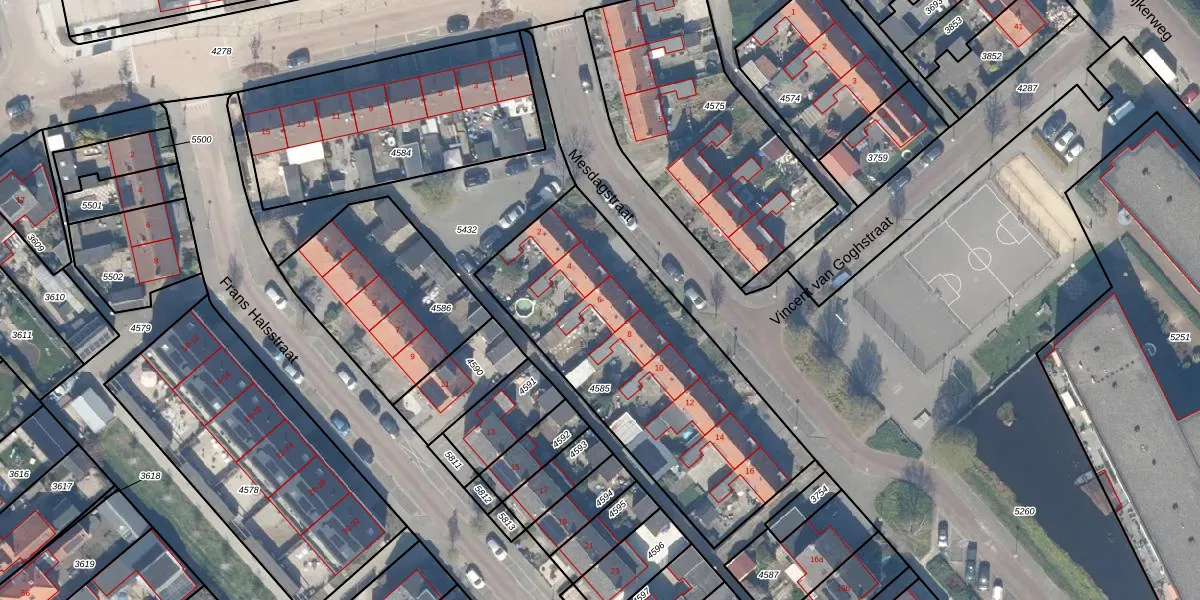 Mesdagstraat 6 is gelegen op kadastraal perceel SWK02D4585. Deze kadastrale aanduiding is uniek en wordt gebruikt door het Kadaster om eigendomsrechten en andere zakelijke rechten vast te leggen. Het perceel maakt onderdeel uit van de kadastrale gemeente Stolwijk.