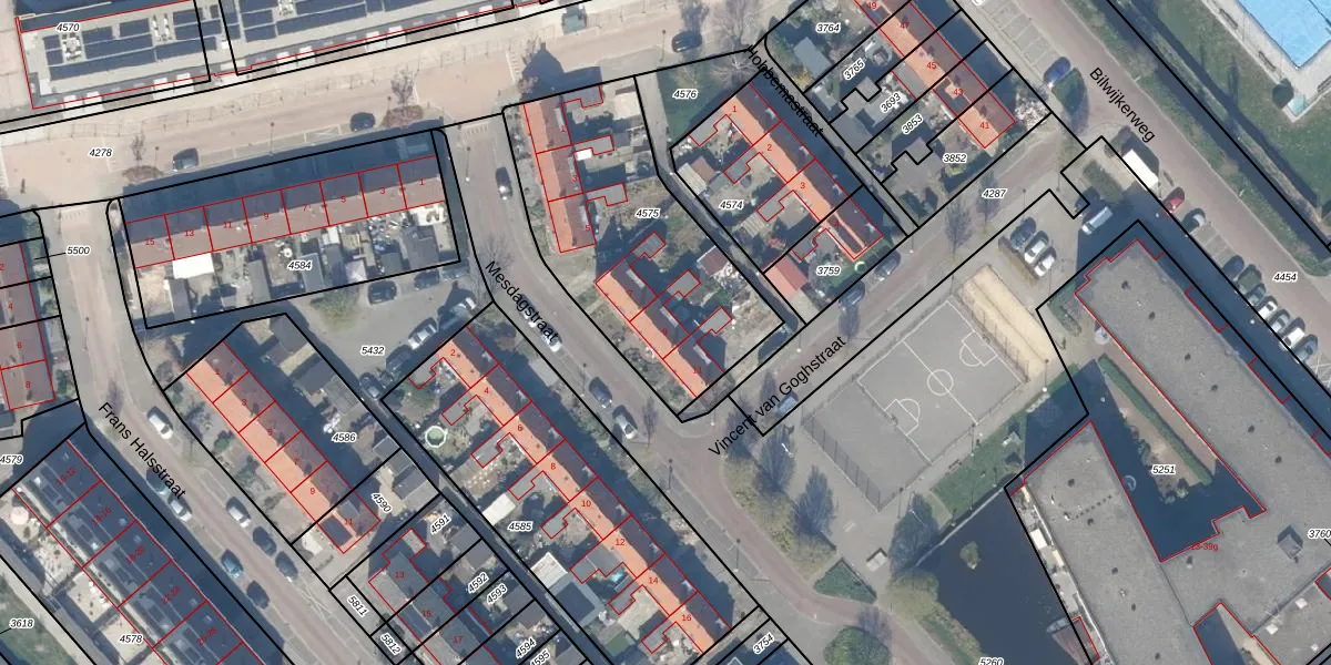Mesdagstraat 9 is gelegen op kadastraal perceel SWK02D4575. Deze kadastrale aanduiding is uniek en wordt gebruikt door het Kadaster om eigendomsrechten en andere zakelijke rechten vast te leggen. Het perceel maakt onderdeel uit van de kadastrale gemeente Stolwijk.