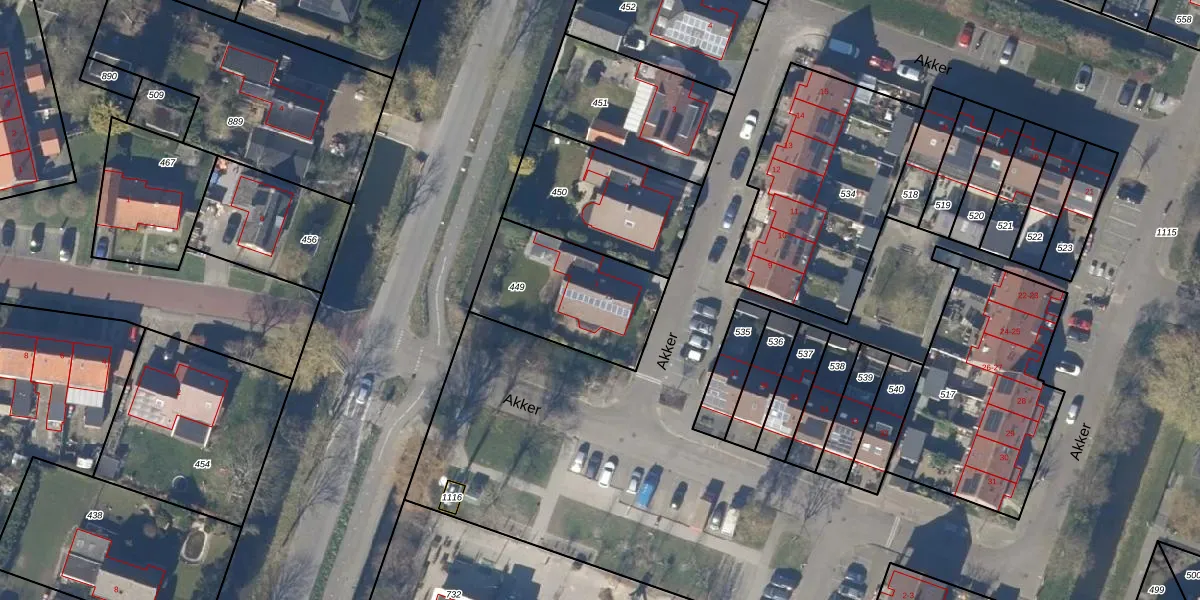 Het perceel waarop Akker 1 staat heeft een oppervlakte van 485 m². Dit is een groot perceel. De perceeloppervlakte wordt geregistreerd door het Kadaster. Gedetailleerde informatie over de maten van dit perceel kunt u vinden in het rapport Kadastrale kaart met maatvoering van Akker 1.