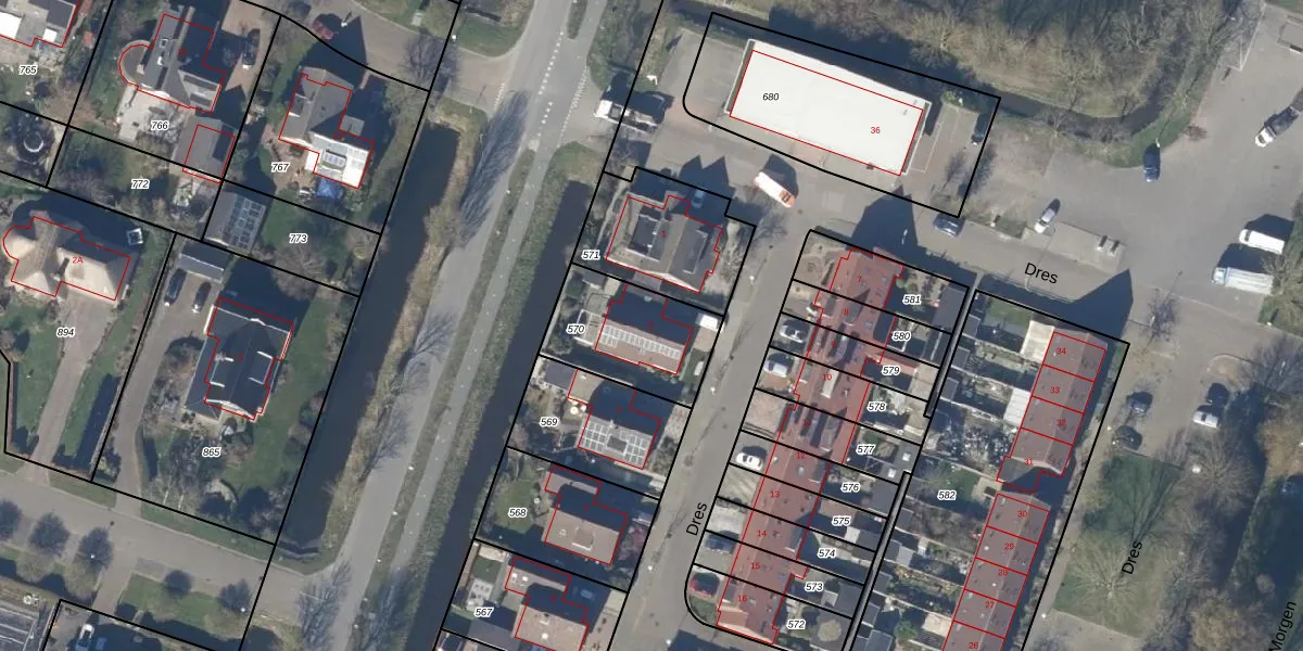 Het perceel waarop Dres 2 staat heeft een oppervlakte van 371 m². Dit is een groot perceel. De perceeloppervlakte wordt geregistreerd door het Kadaster. Gedetailleerde informatie over de maten van dit perceel kunt u vinden in het rapport Kadastrale kaart met maatvoering van Dres 2.