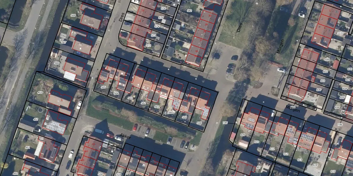 Gebruik de zoekbalk of klik op een perceel voor informatie over de adressen binnen dit perceel.