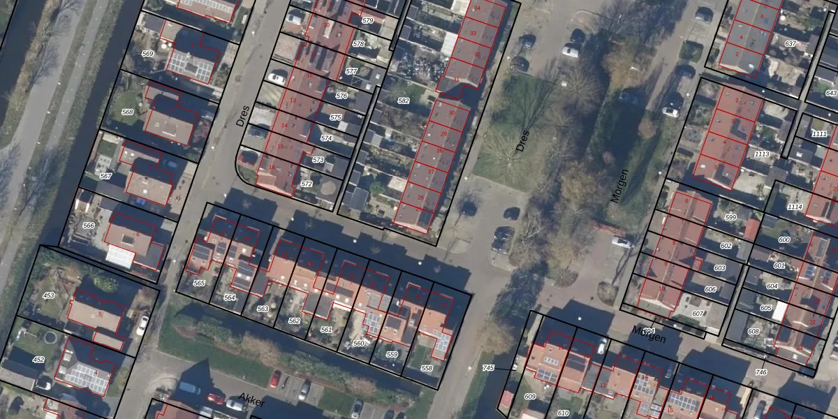 Het perceel waarop Dres 25 staat heeft een oppervlakte van 1529 m². Dit is een zeer groot perceel. De perceeloppervlakte wordt geregistreerd door het Kadaster. Gedetailleerde informatie over de maten van dit perceel kunt u vinden in het rapport Kadastrale kaart met maatvoering van Dres 25.